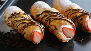 【冷凍パイシートで作る簡単パイコロネ🍓】Easy Cream Horns with Frozen Puff Pastry