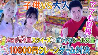 【クレーンゲーム】メロジョイスクイーズ&ボンボンドロップシール大量!子供VS大人10000円対決 - はねまりチャンネル