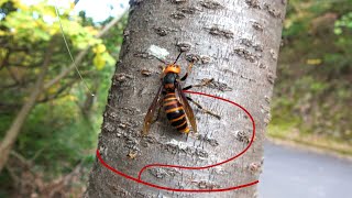 オオスズメバチの女王を木につないで放置したらガチで来た