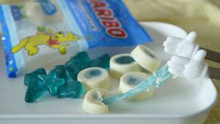 Stretchy gummy chocolate made with Blue HARIBO Happy-versary 日本限定の青いハリボーハッピーバーサリーを使った伸びーるグミチョコ